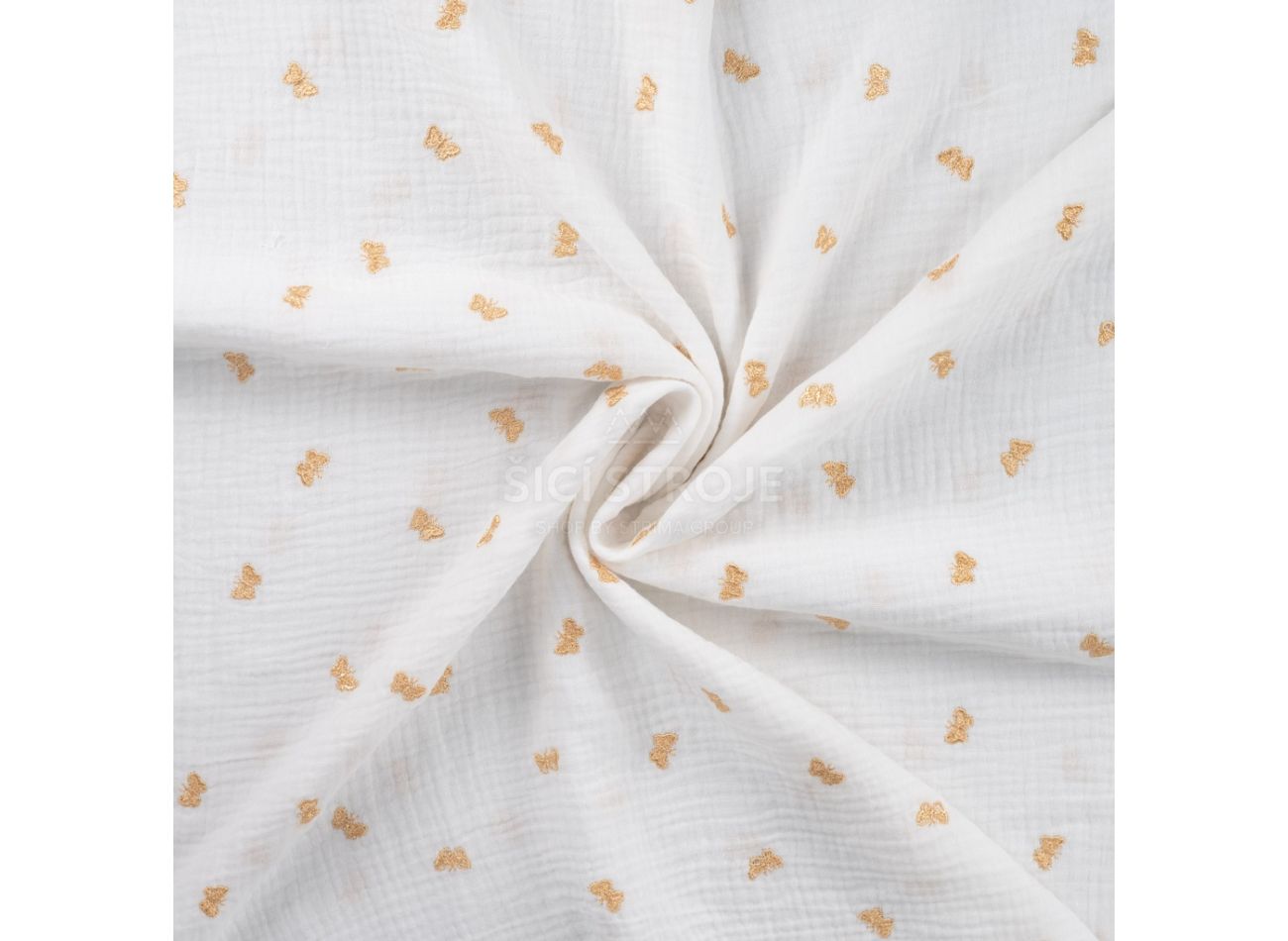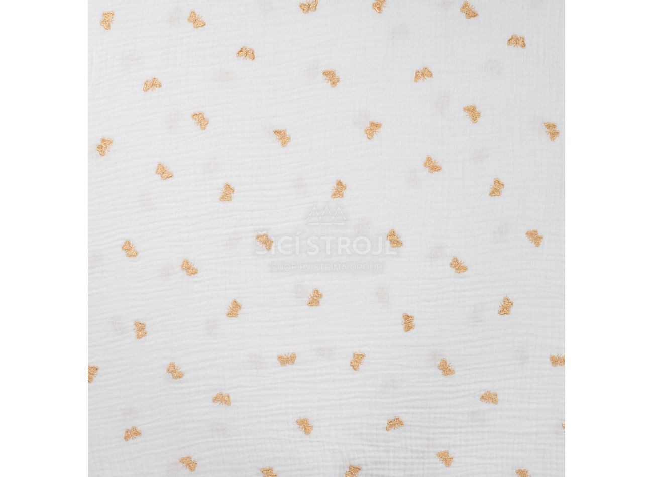 Bambino Embroidery Gold, 100% bavlna, minimální šíře 135 cm, gramáž 130 g/m2, vzor butterfly, barva gold..
