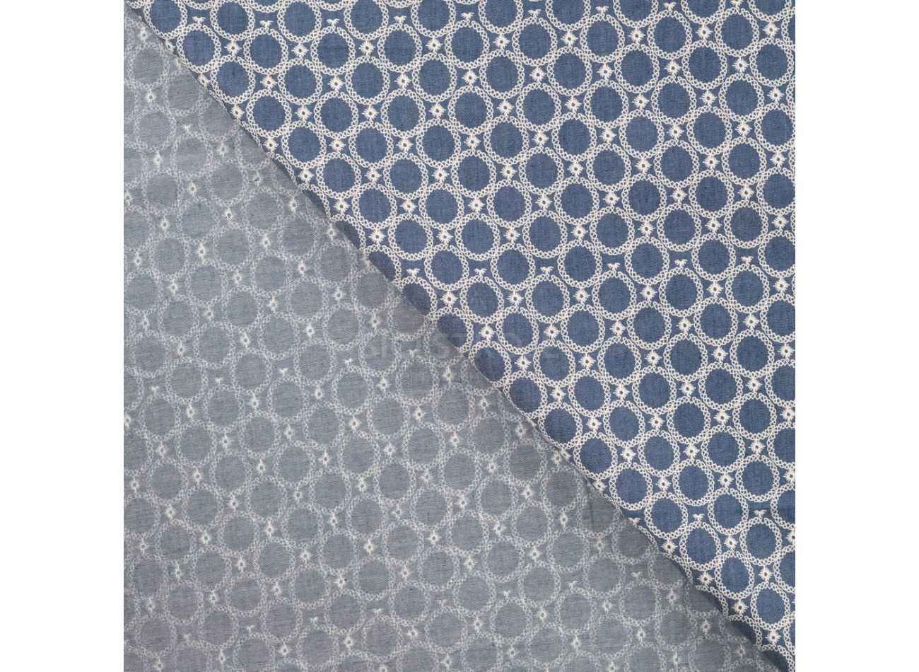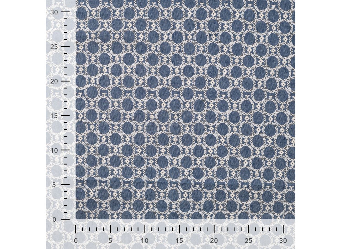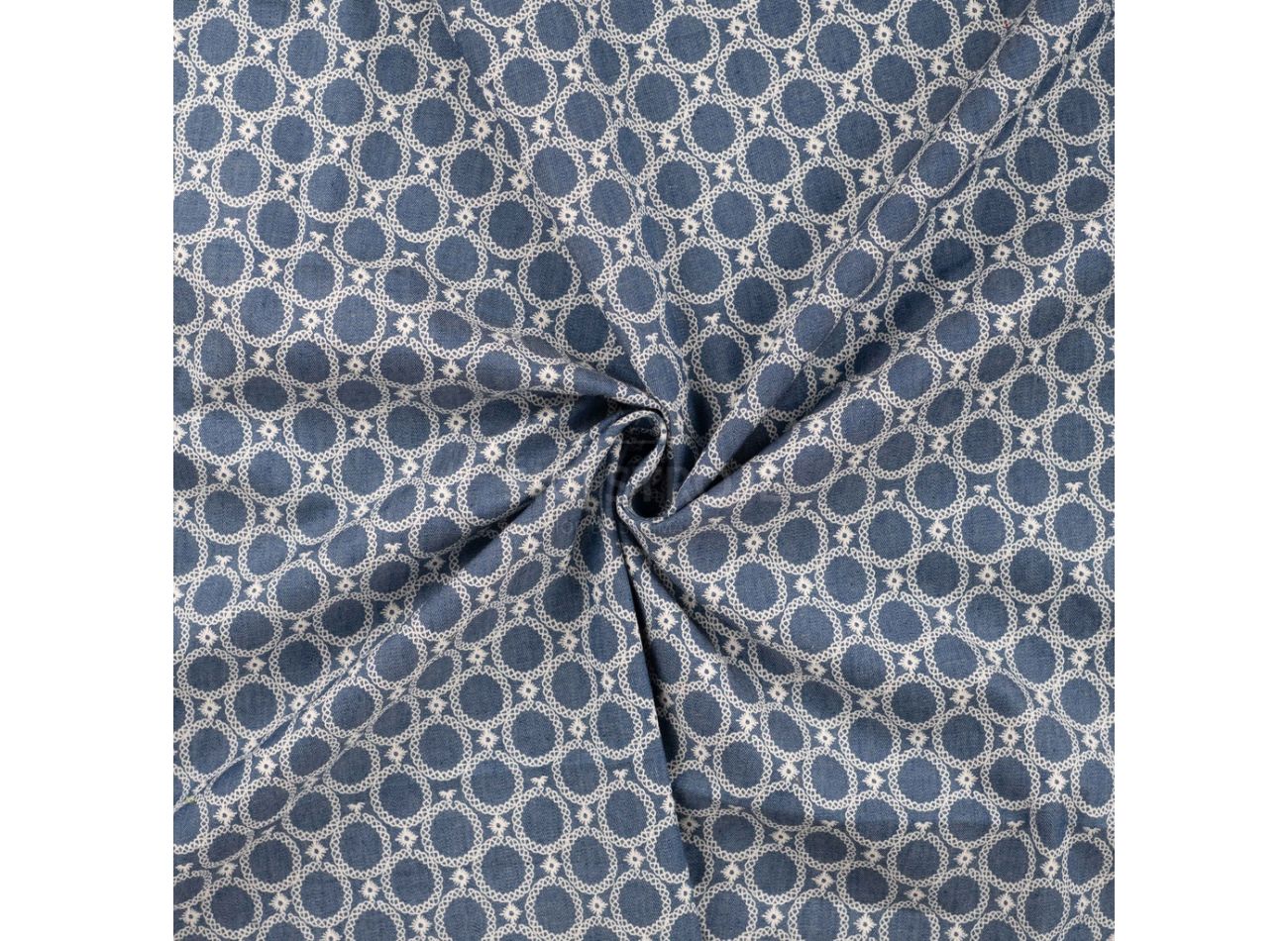Chambray Print Circles, 100% bavlna, minimální šíře 140 cm, gramáž 140 g/m2, vzor graphic circles, barva denim