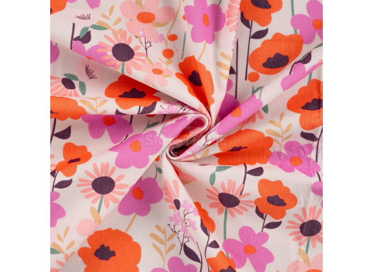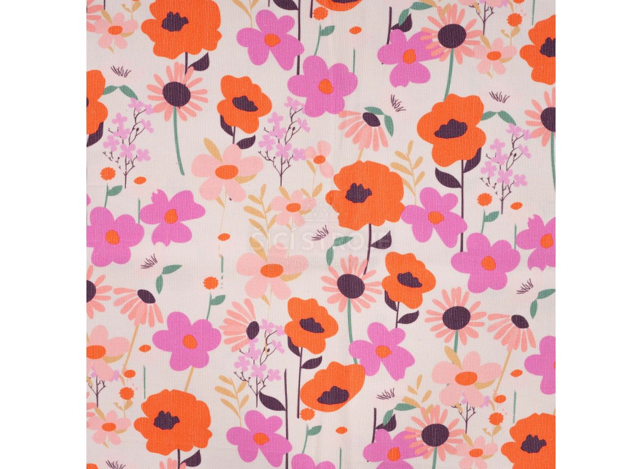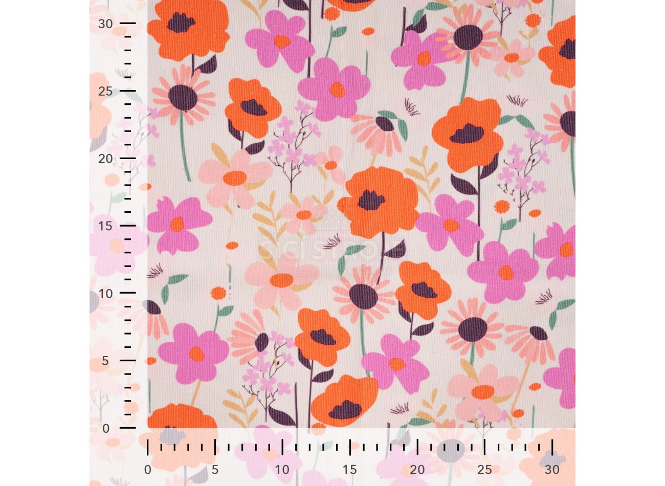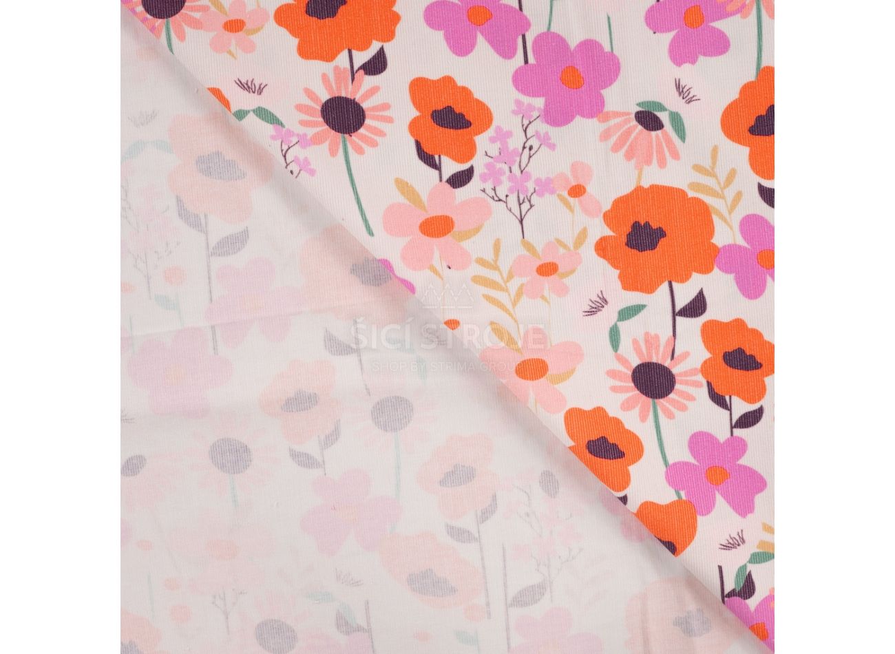 Cotton Cord Digi Print, 100% bavlna, minimální šíře 143 cm, gramáž 150 g/m2, vzor big flowers, barva violet