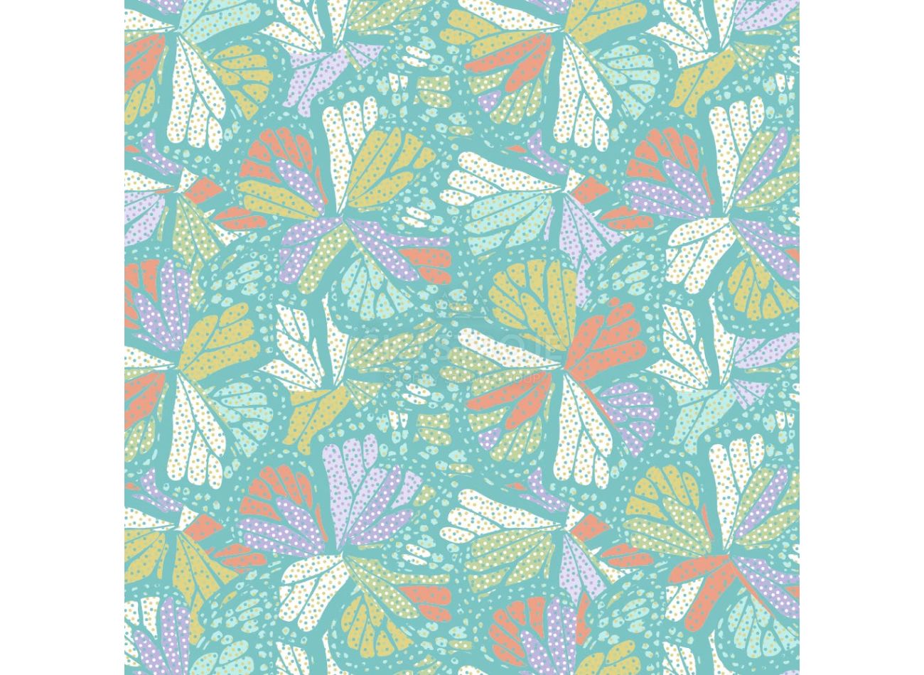 Cotton Voile Print, 100% bavlna, minimální šíře 140 cm, gramáž 70 g/m2, vzor butterfly wings, barva aqua