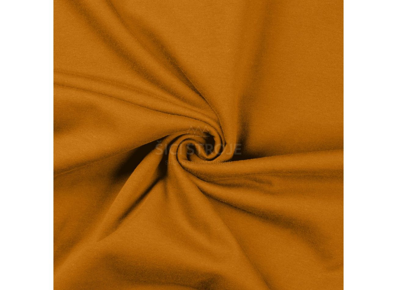 French terry počesaná, 96% bavlna, 4% elastan, minimální šíře 145 cm, gramáž 230 g/m2, barva ochre..