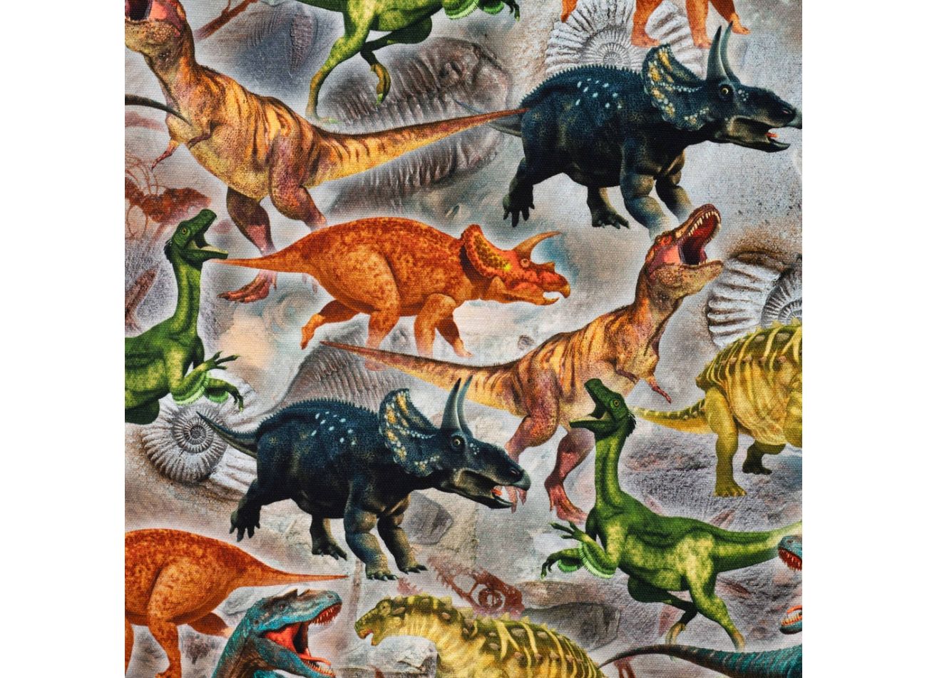 Half Panama Digital Print, 100% bavlna, minimální šíře 140 cm, gramáž 210 g/m2, vzor dinos, barva grey