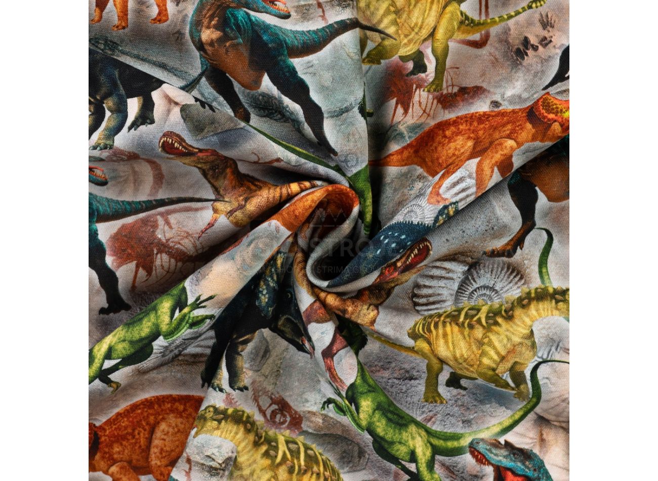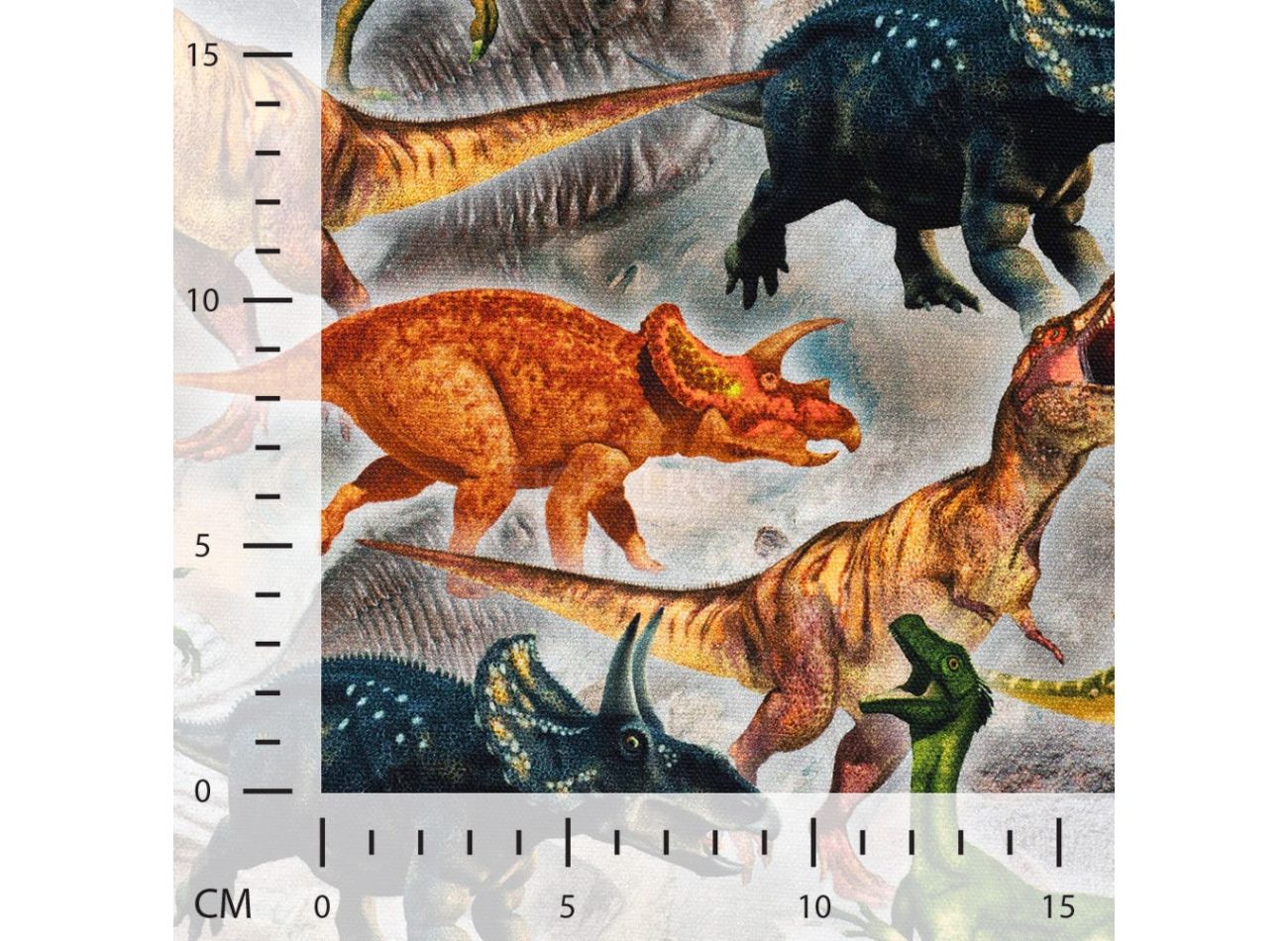Half Panama Digital Print, 100% bavlna, minimální šíře 140 cm, gramáž 210 g/m2, vzor dinos, barva grey..