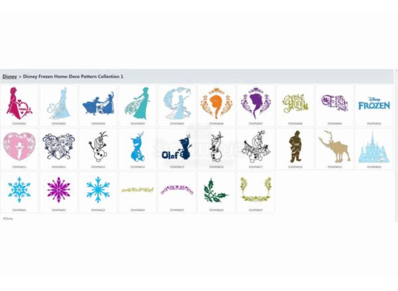 Karta se vzory Disney Frozen určené pro řezací plotry Brother.