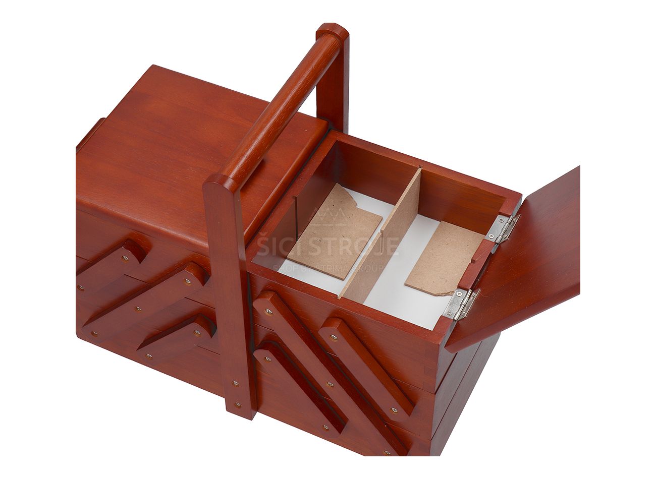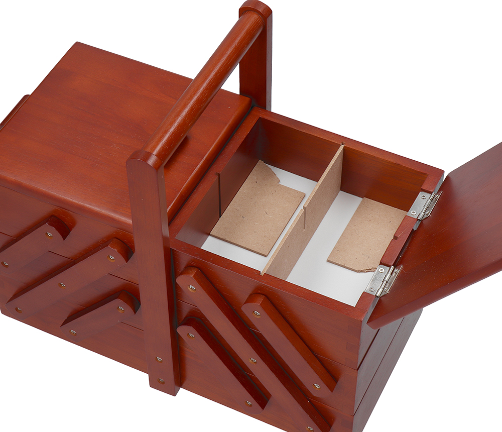 Představte si to - žádné hledání jehel, nití nebo knoflíků po celém domě. Už žádné chaotické krabice nebo pytlíky, ve kterých nikdy nic nenajdete. S naší rozkládací dřevěnou kazetou na šití bude vše, co potřebujete, vždy přehledně uspořádáno a na dosah ruky. Tento elegantní a praktický organizér je navržen tak, aby splňoval potřeby jak začínajících, tak i pokročilých švadlenek. Ať už šijete občas, nebo je to vaše vášeň, tato kazeta vám ulehčí život a přinese do vašeho tvoření nový rozměr pořádku a pohodlí.