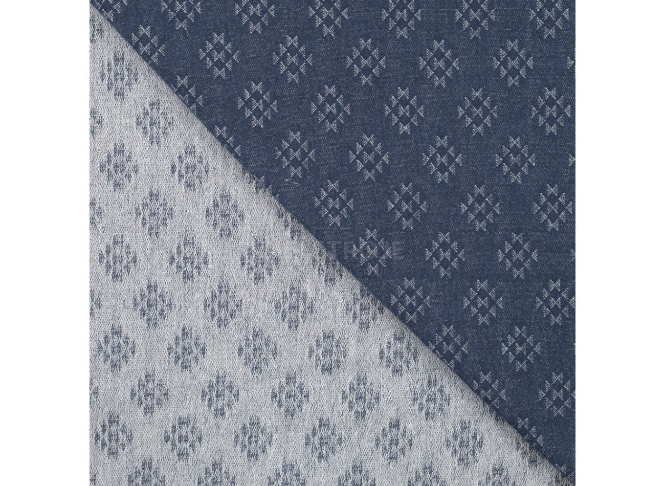 Knitted Denim Jacky, 72% bavlna, 23% polyester, 5% elastan, minimální šíře 155 cm, gramáž 250 g/m2, vzor crystal, barva denim..