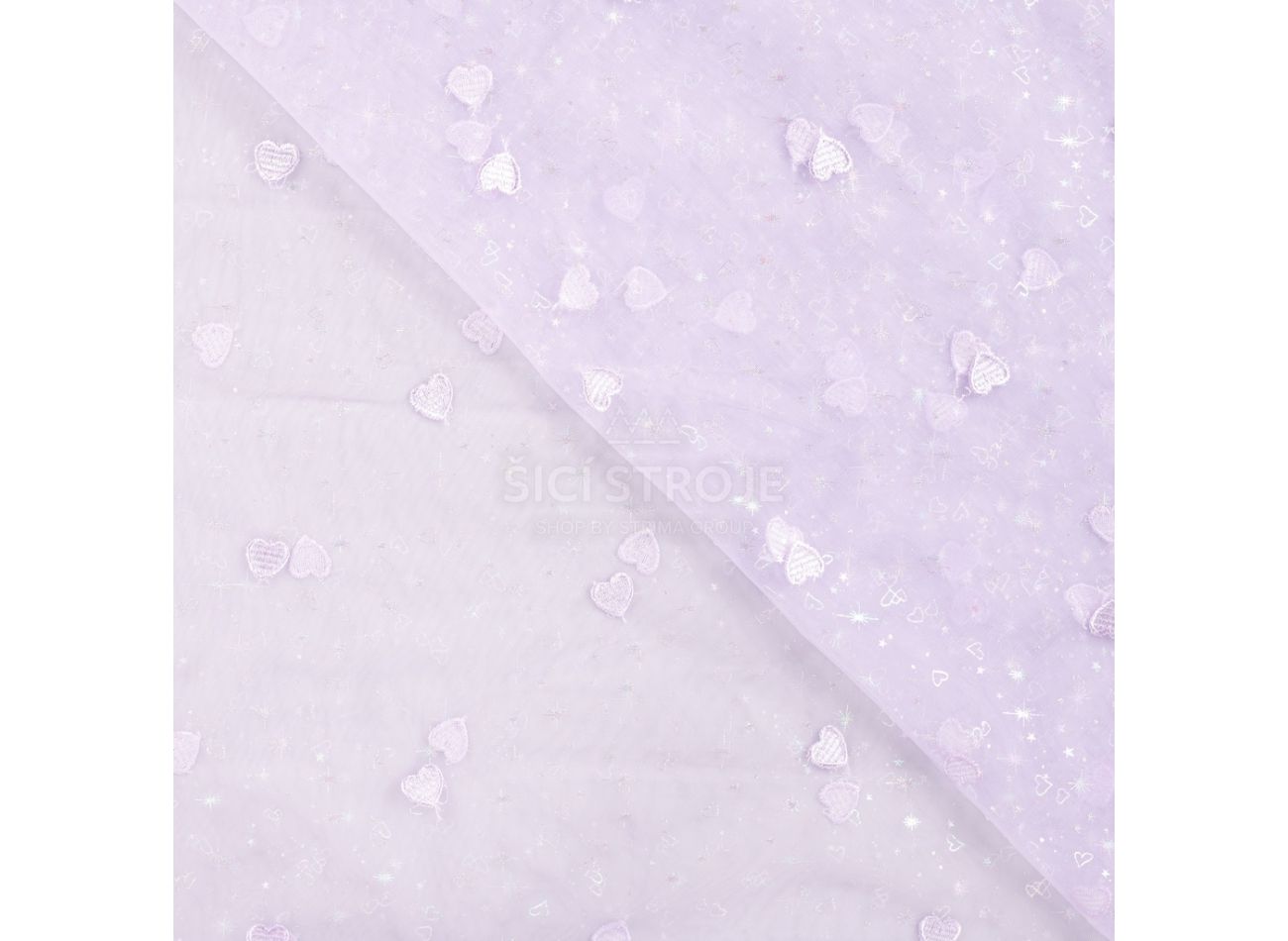Nylon Mesh & Embroidery Hearts, 100% polyamid, minimální šíře 125 cm, gramáž 20 g/m2, barva dusty lilac..