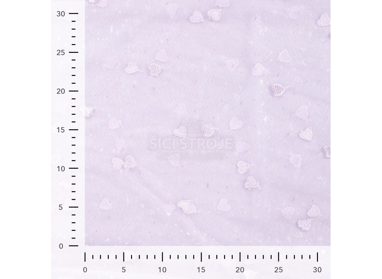 Nylon Mesh & Embroidery Hearts, 100% polyamid, minimální šíře 125 cm, gramáž 20 g/m2, barva dusty lilac