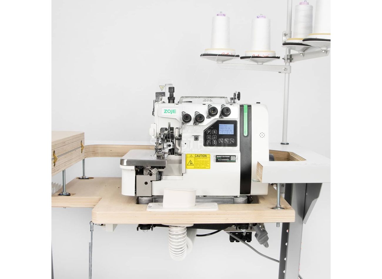 Moderní automatický 2jehlový, 5nitný průmyslový overlock s energeticky úsporným AC servomotorem zabudovaným v hlavě stroje. Stroj šije maximální rychlostí 6.500 stehů za minutu, má rozteč jehly 3 mm, šířku stehu 5 mm, celkovou šířku stehu 8 mm a maximální délku stehu 3,1 mm. Přítlačná patka se automaticky zvedá na maximum 5 mm.