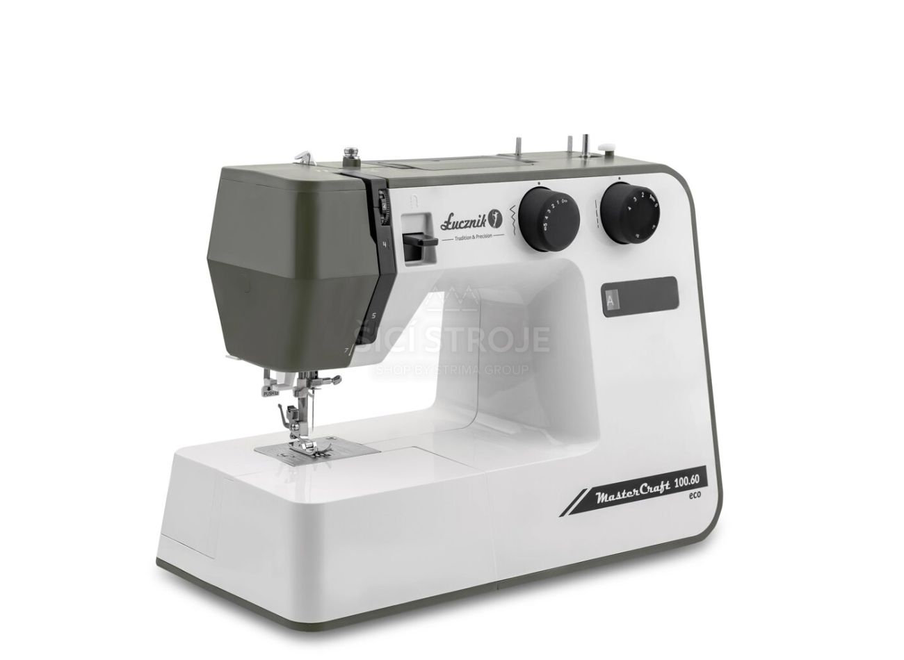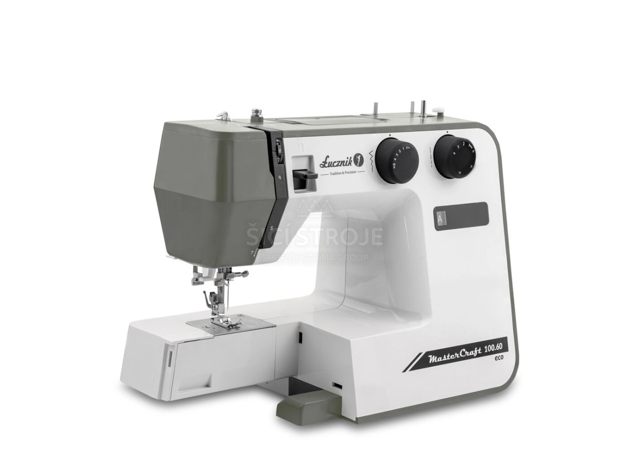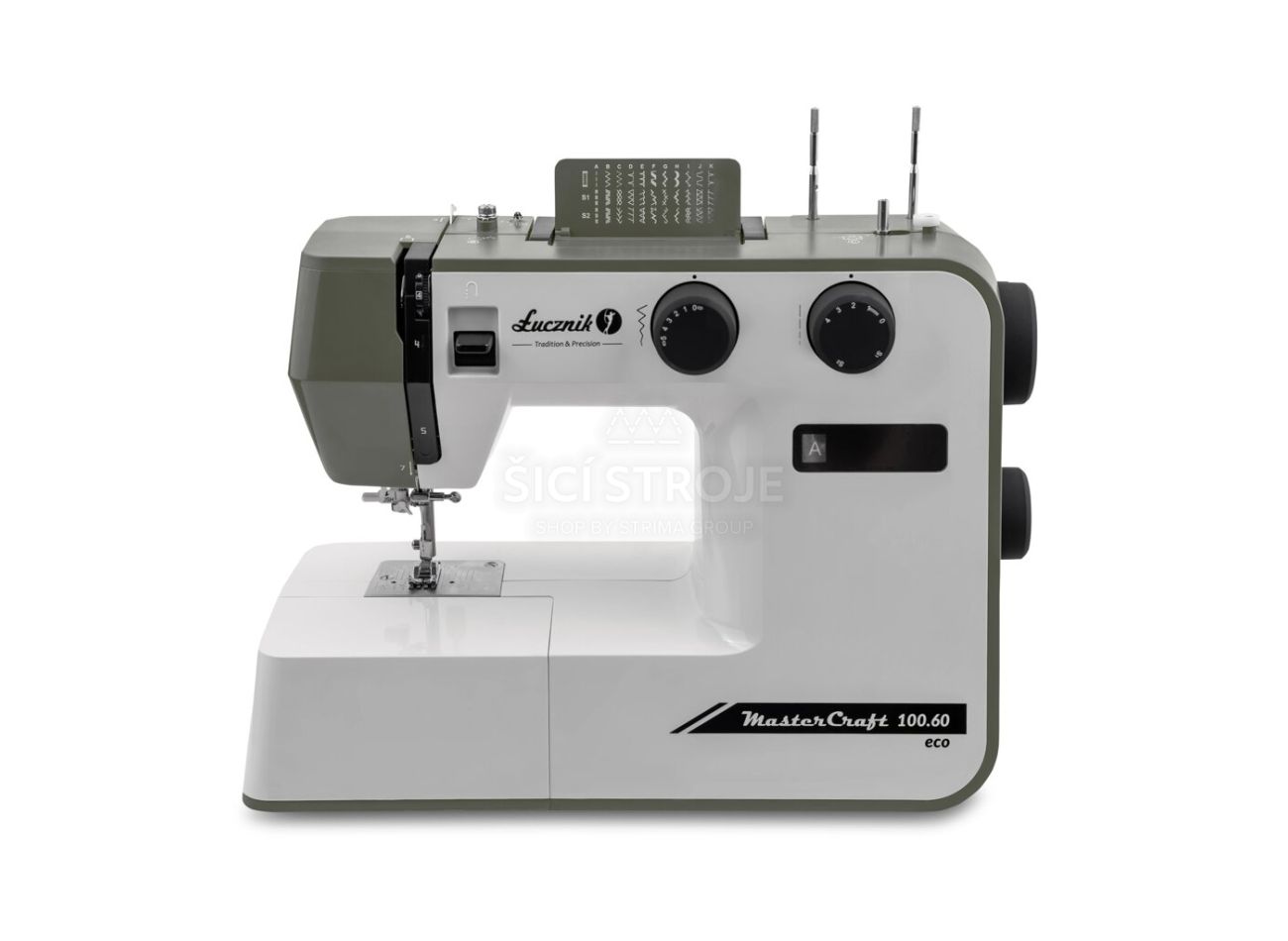 Šicí stroj Lucznik Master Craft 100.60, mechanický stroj s nízkou spotřebou pro běžné potřeby, 34 programů, automatický navlékač jehly, automatická knoflíková dírka, možnost regulace délky a šířky stehu.