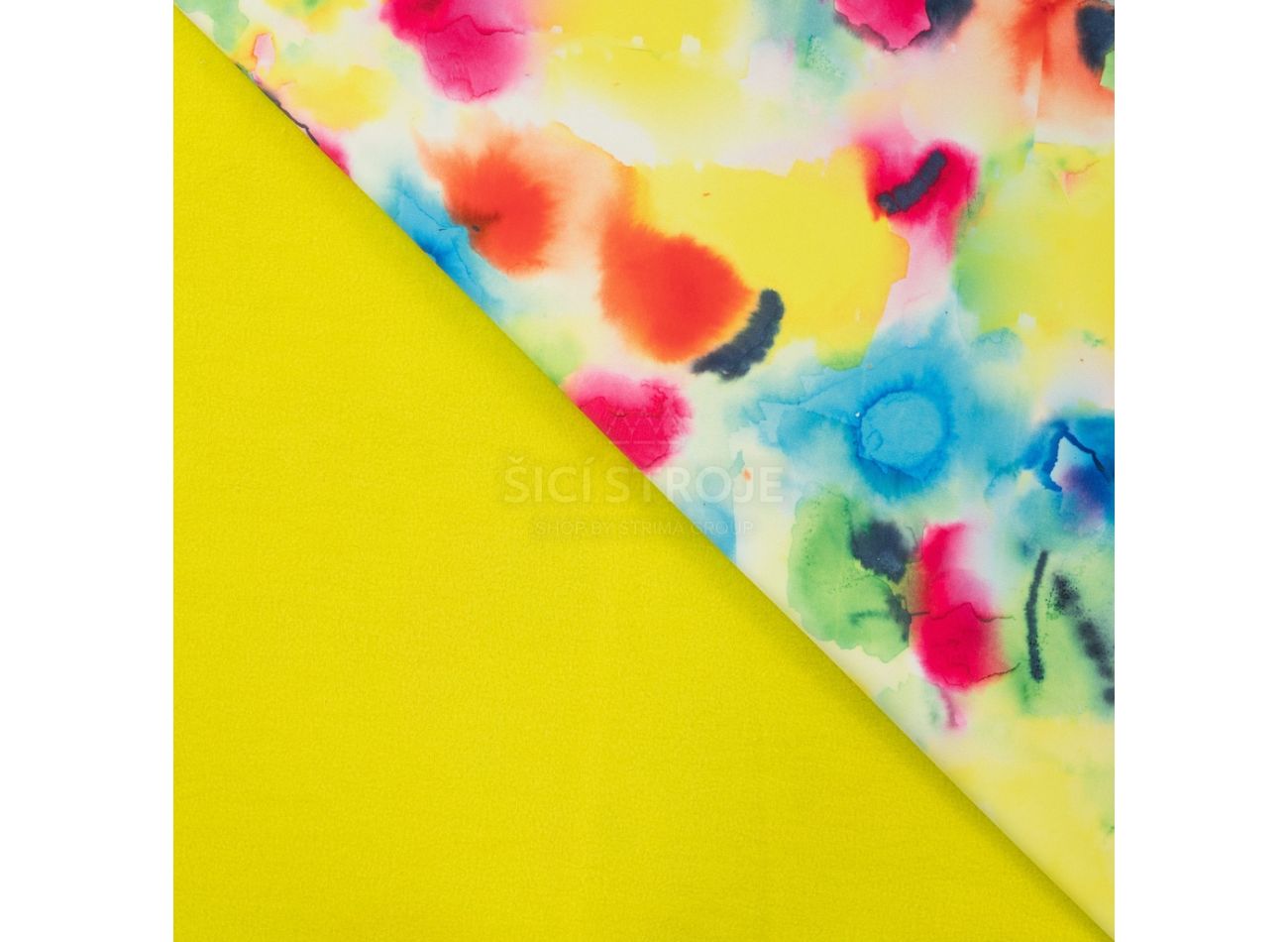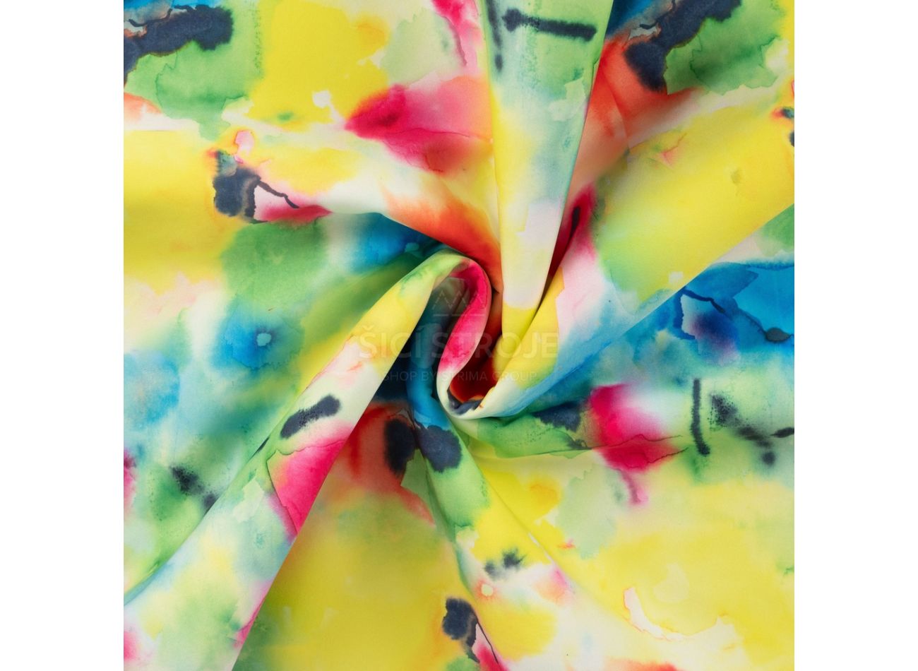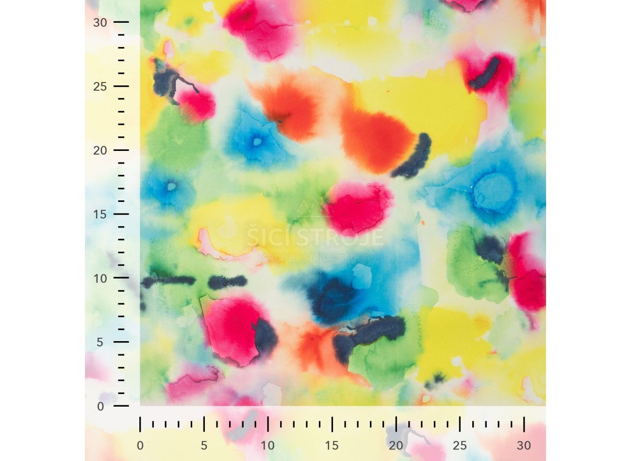 Soft Shell Digital, 99% polyester, 1% elastan, minimální šíře 145 cm, gramáž 310 g/m2, vzor flowing ink, barva multicolor