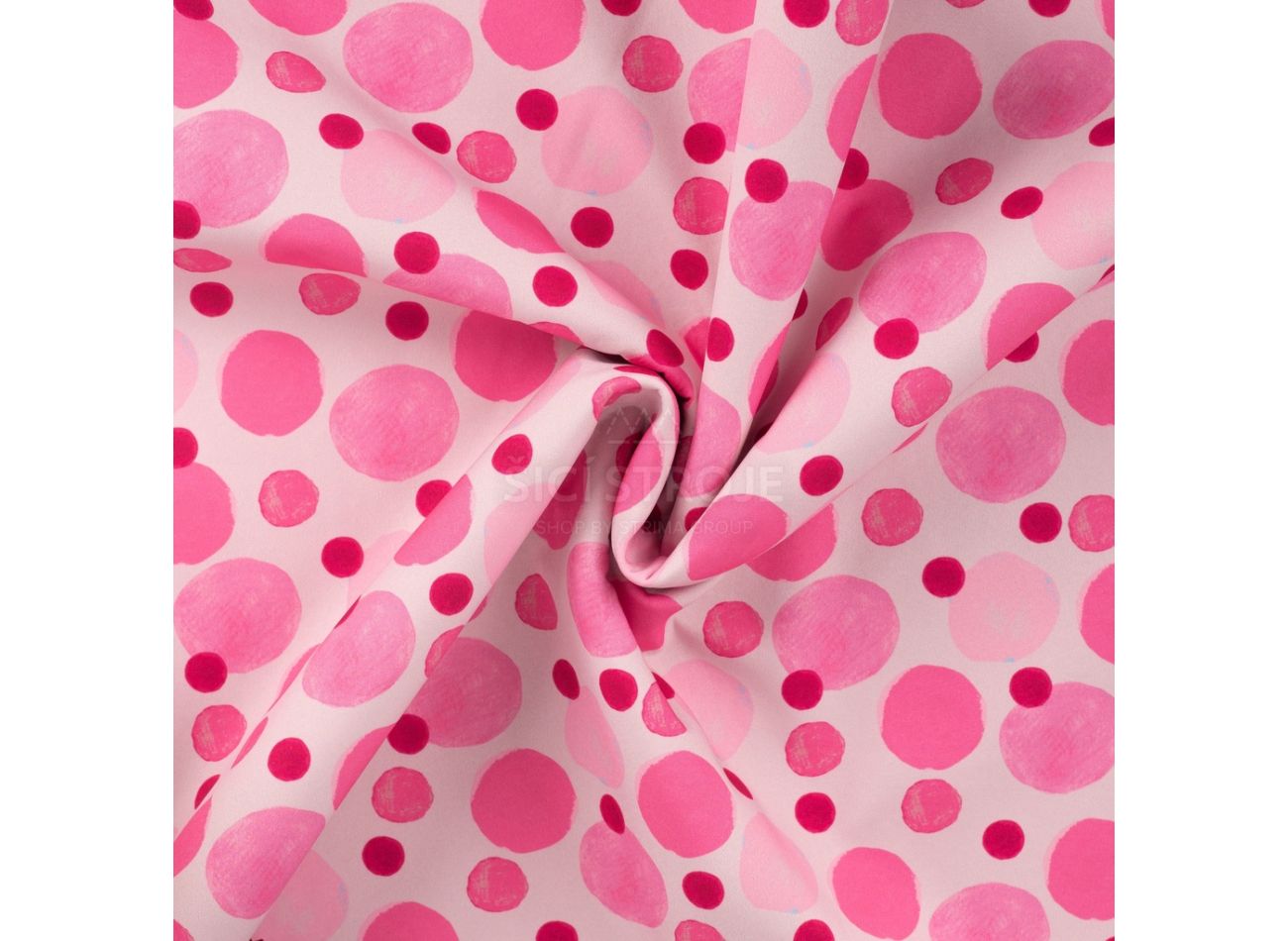 Soft Shell Digital, 99% polyester, 1% elastan, minimální šíře 145 cm, gramáž 310 g/m2, vzor painted dots, barva fuchsia