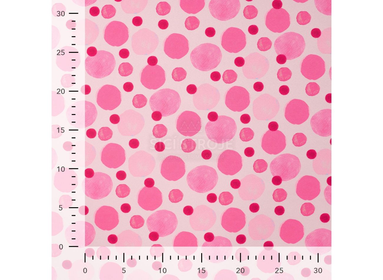 Soft Shell Digital, 99% polyester, 1% elastan, minimální šíře 145 cm, gramáž 310 g/m2, vzor painted dots, barva fuchsia..
