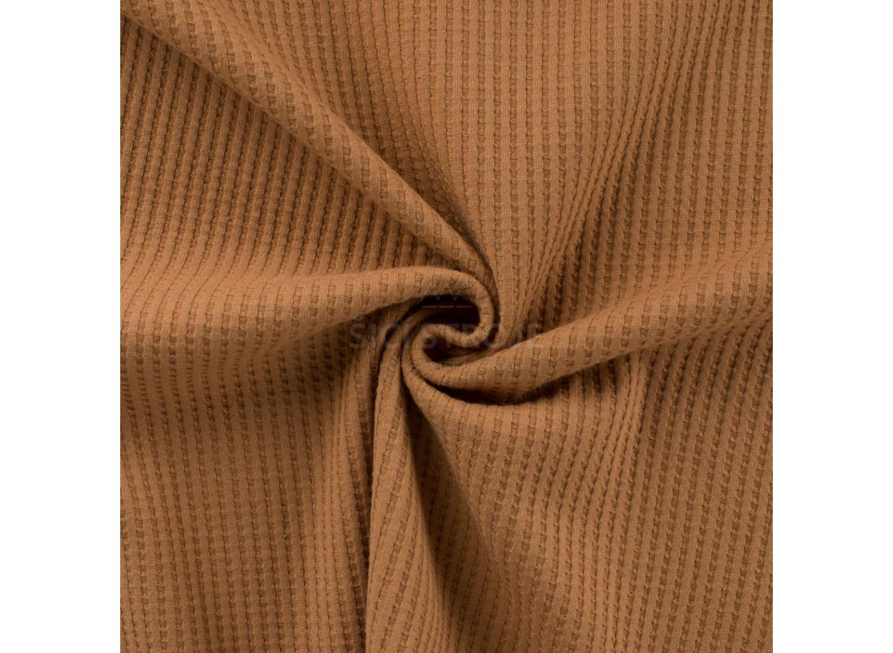 Vaflový úplet, 95% bavlna, 5% elastan, minimální šíře 150 cm, gramáž 230 g/m2, barva karamelová