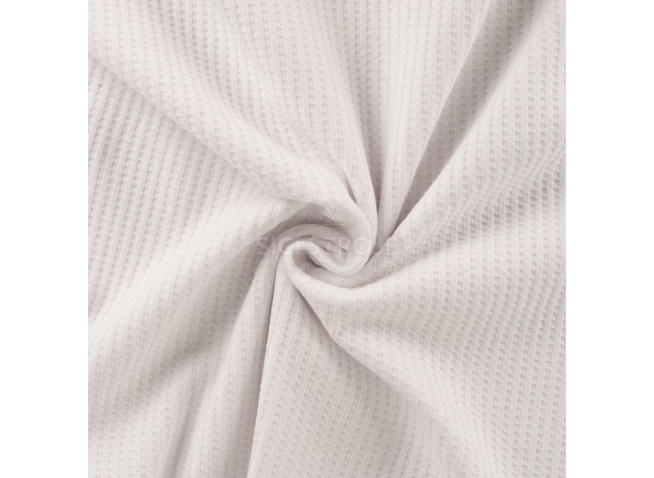 Vaflový úplet, 95% bavlna, 5% elastan, minimální šíře 150 cm, gramáž 230 g/m2, barva opticky bílá..