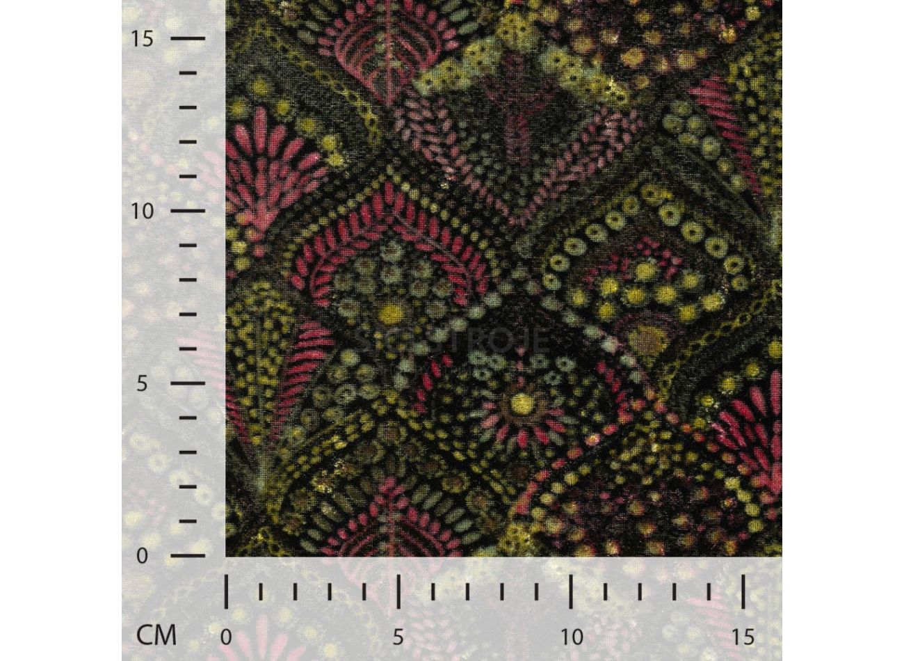 Velour Print, 95% polyester, 5% elastan, minimální šíře 145 cm, gramáž 200 g/m2, vzor casablanca, barva lime..